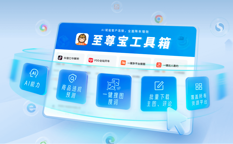 至尊宝免费提供一键多平台搜图/搜词选品,宝贝详情、SKU各项数据分析,全站开车和计划管理等功能,覆盖跨境和抖店等几十大货源平台,专业电商运营工具。