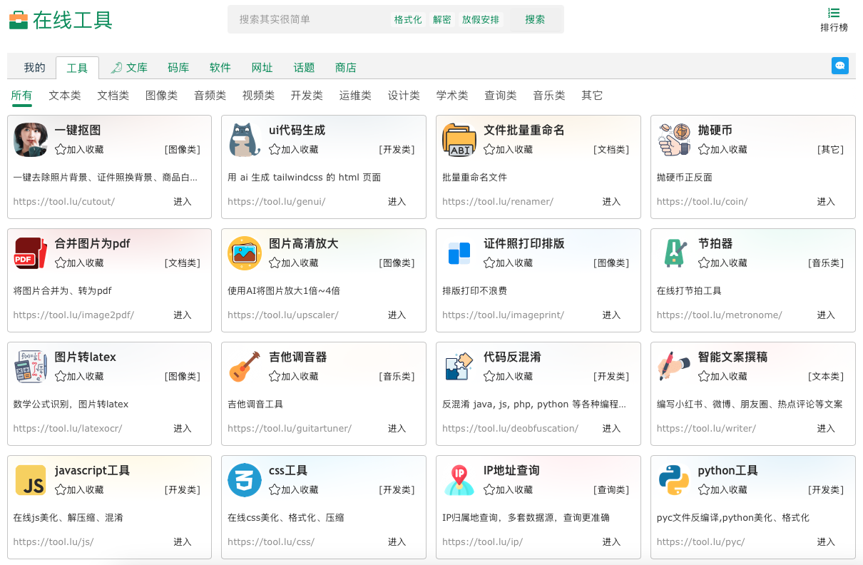 可以通过该平台进行一键抠图、文件批量重命名、代码格式化、音频剪辑等操作。